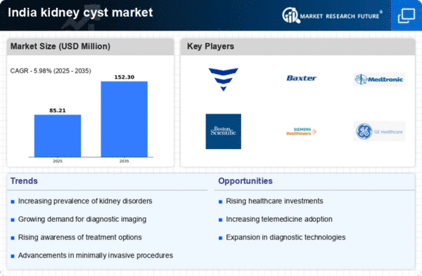 The increase in healthcare expenditure in India is likely to positively influence the kidney cyst market. With the government's focus on improving healthcare infrastructure and access to medical services, more individuals are expected to seek treatment for kidney-related issues. The National Health Policy aims to increase public health spending to 2.5 % of GDP, which may enhance the availability of diagnostic and therapeutic options for kidney cysts. As healthcare facilities expand and improve, the kidney cyst market could see a rise in demand for innovative treatment solutions. Furthermore, the growing trend of health insurance coverage may encourage patients to seek timely medical intervention for kidney cysts, thereby boosting market growth.
