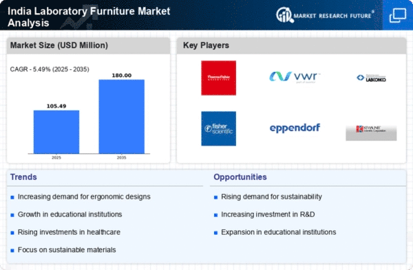 The laboratory furniture market in India is significantly influenced by the increased investment in healthcare infrastructure. The government and private sector are channeling substantial funds into the expansion and modernization of healthcare facilities, which includes the establishment of advanced laboratories. Reports indicate that healthcare expenditure in India is projected to reach $370 billion by 2025, with a considerable portion allocated for laboratory development. This influx of capital is expected to drive the demand for high-quality laboratory furniture that meets the stringent requirements of modern healthcare settings. As hospitals and diagnostic centers upgrade their facilities, the laboratory furniture market is likely to see a corresponding rise in demand for specialized furniture solutions that enhance operational efficiency and safety.