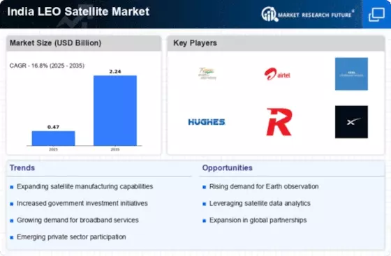 Technological advancements play a crucial role in shaping the India LEO Satellite Market. Innovations in satellite design, miniaturization, and propulsion systems have made it feasible to deploy large constellations of small satellites. These advancements not only reduce costs but also enhance the capabilities of LEO satellites, allowing for improved data collection and communication services. As of February 2026, companies in India are increasingly adopting cutting-edge technologies such as artificial intelligence and machine learning to optimize satellite operations. This trend is likely to drive competition and innovation within the India LEO Satellite Market, fostering a dynamic ecosystem that attracts both domestic and international players.