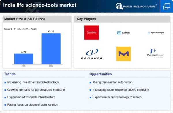 Regulatory frameworks in India are increasingly supportive of innovation within the life science-tools market. The government has implemented policies aimed at streamlining the approval processes for new medical devices and tools. This regulatory environment encourages research and development, allowing companies to bring innovative products to market more efficiently. For instance, the Medical Device Rules introduced in 2017 have facilitated a more structured approach to product registration. As a result, the life science-tools market is likely to benefit from a faster introduction of cutting-edge technologies, which can enhance diagnostic and therapeutic capabilities in healthcare settings.
