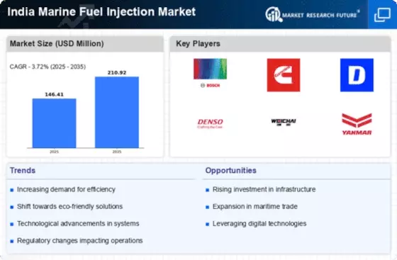 The India Marine Fuel Injection Market is increasingly focused on fuel efficiency and cost reduction, driven by the need for shipping companies to enhance profitability. With rising fuel prices, there is a pressing need for marine operators to optimize fuel consumption through advanced fuel injection systems. These systems not only improve engine performance but also contribute to significant cost savings over time. The growing awareness of the economic benefits associated with fuel-efficient technologies is prompting shipping companies to invest in modern fuel injection solutions. As a result, the India Marine Fuel Injection Market is likely to experience a shift towards products that offer enhanced fuel efficiency, thereby supporting the overall sustainability and profitability of the marine sector.