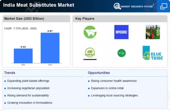 Technological advancements in food production are significantly impacting the India Meat Substitutes Market. Innovations in food technology, such as fermentation and extrusion processes, are enabling the development of high-quality meat alternatives that closely mimic the taste and texture of traditional meat. These advancements are crucial in attracting consumers who may be hesitant to switch to meat substitutes. Moreover, the rise of startups focusing on alternative proteins is fostering a competitive landscape, leading to continuous improvements in product offerings. Data indicates that the market for plant-based meat in India is projected to grow at a compound annual growth rate of over 20 percent in the coming years. This growth is likely to be fueled by ongoing technological innovations that enhance product quality and consumer acceptance.