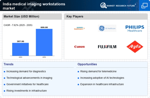 The rising geriatric population in India is a significant driver for the medical imaging-workstations market. As the elderly population grows, the prevalence of age-related health issues, such as cardiovascular diseases and cancers, is also increasing. This demographic shift necessitates enhanced diagnostic capabilities, leading to a higher demand for advanced imaging workstations. According to projections, the geriatric population is expected to reach 300 million by 2030, which will likely result in a corresponding increase in the medical imaging-workstations market. Healthcare providers are thus compelled to invest in sophisticated imaging technologies to cater to the needs of this expanding demographic.