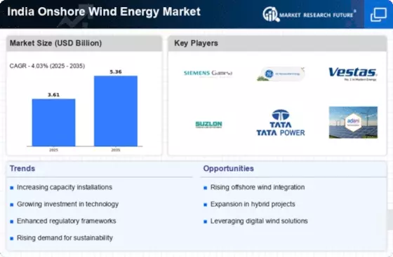 The regulatory environment surrounding the India Onshore Wind Energy Market appears to be increasingly favorable, with various policies aimed at promoting wind energy. The introduction of the National Wind-Solar Hybrid Policy aims to optimize the use of land and resources, potentially leading to more efficient energy generation. Additionally, state-level policies, such as feed-in tariffs and renewable purchase obligations, are designed to encourage investments in wind energy. As of February 2026, the government is also working on simplifying the approval process for wind projects, which could further enhance the ease of doing business in this sector. This supportive regulatory framework is likely to stimulate growth and attract new entrants into the market.