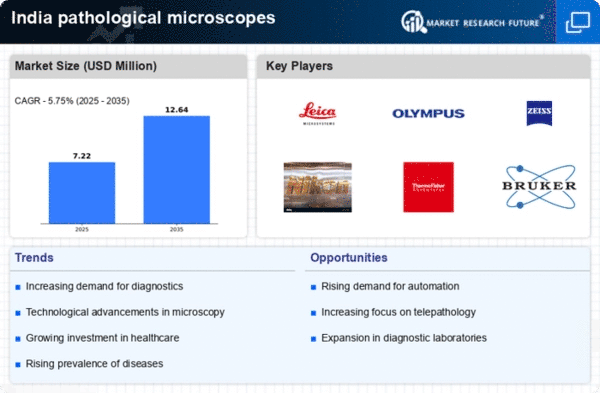 The rising healthcare expenditure in India is a pivotal driver for the pathological microscopes market. As the government and private sectors allocate more funds towards healthcare, the demand for advanced diagnostic tools, including pathological microscopes, is likely to surge. In recent years, healthcare spending has increased significantly, with estimates suggesting a growth rate of approximately 12% annually. This trend indicates a robust investment in medical infrastructure, which is essential for enhancing diagnostic capabilities. Consequently, hospitals and laboratories are more inclined to procure high-quality pathological microscopes to improve patient outcomes. The focus on early disease detection and accurate diagnosis further propels the need for sophisticated microscopy solutions. As healthcare budgets expand, the pathological microscopes market is poised to benefit from increased procurement and adoption of innovative technologies.