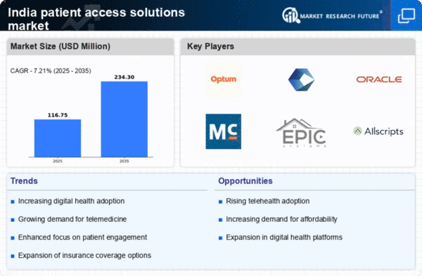 There is a growing trend of health awareness among patients in India, which is significantly impacting the patient access-solutions market. As individuals become more informed about their health and wellness, they are actively seeking out healthcare services that are accessible and convenient. This shift is reflected in the rising number of health apps and online platforms that facilitate easy access to medical information and services. Reports indicate that approximately 60% of urban patients now prefer digital solutions for managing their health. This heightened awareness is likely to drive demand for innovative patient access solutions, as healthcare providers strive to meet the evolving expectations of their patients.