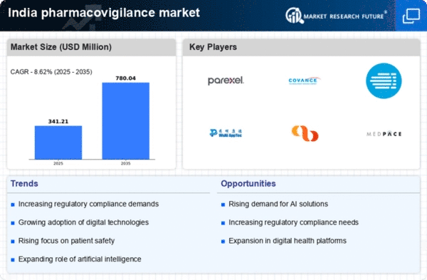 The rapid expansion of the pharmaceutical industry in India is a crucial driver for the pharmacovigilance market. As more pharmaceutical companies establish operations in the country, the need for effective pharmacovigilance systems becomes increasingly apparent. The growth of the industry is accompanied by a rise in the number of new drug approvals, which necessitates comprehensive monitoring of safety profiles. With the Indian pharmaceutical market projected to reach $65 billion by 2024, the demand for pharmacovigilance services is likely to increase correspondingly. This expansion presents opportunities for service providers to offer innovative solutions that cater to the evolving needs of the industry, thereby propelling the pharmacovigilance market forward.