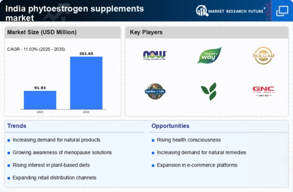 The phytoestrogen supplements market in India is experiencing a notable surge in interest towards plant-based health solutions. This trend is largely driven by a shift in consumer preferences towards natural and organic products. As individuals become more health-conscious, they are increasingly seeking alternatives to synthetic supplements. The market for phytoestrogen supplements is projected to grow at a CAGR of approximately 8% over the next five years, reflecting this growing inclination. Furthermore, the rise of vegetarianism and veganism in India contributes to the demand for plant-derived supplements, as consumers look for ways to enhance their health through natural means. This growing interest in plant-based solutions is likely to bolster the phytoestrogen supplements market, as more individuals recognize the potential benefits of these products for hormonal balance and overall well-being.