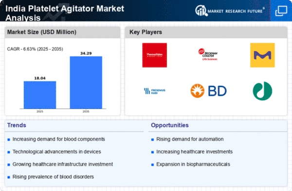 The platelet agitator market in India is experiencing a surge due to increasing investments in healthcare infrastructure. The government and private sectors are allocating substantial funds to enhance medical facilities, which includes the procurement of advanced medical equipment. In 2025, healthcare expenditure in India is projected to reach approximately $370 billion, reflecting a growth of around 12% from previous years. This influx of capital is likely to facilitate the acquisition of platelet agitators, which are essential for blood component processing. As hospitals and blood banks upgrade their technology, the demand for efficient and reliable platelet agitators is expected to rise, thereby driving market growth. Furthermore, the emphasis on improving patient outcomes and operational efficiency in healthcare settings is likely to further bolster the platelet agitator market in India.