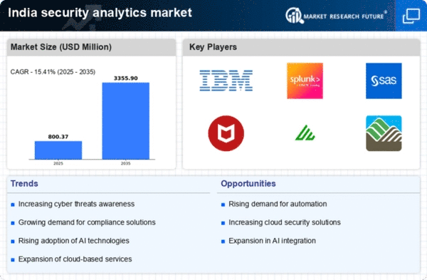 The rapid digital transformation across various sectors in India is significantly impacting the security analytics market. As organizations migrate to digital platforms and adopt new technologies, the attack surface expands, making them more vulnerable to cyber threats. This shift necessitates the implementation of advanced security analytics solutions to monitor and protect digital assets. The market is projected to grow as businesses recognize the importance of integrating security into their digital transformation strategies. According to estimates, the digital transformation market in India is expected to reach $1 trillion by 2025, further fueling the demand for security analytics tools that can provide comprehensive visibility and threat intelligence.