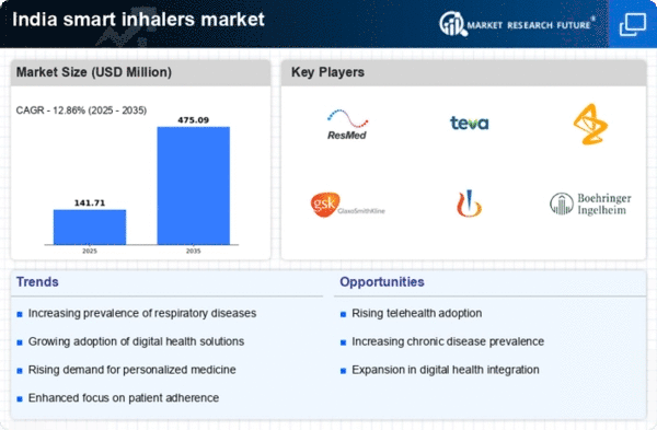 The increasing incidence of asthma and chronic obstructive pulmonary disease (COPD) in India is a primary driver for the smart inhalers market. According to recent health surveys, approximately 15-20 million individuals in India suffer from asthma, while COPD affects around 10 million people. This growing patient population necessitates advanced management solutions, such as smart inhalers, which offer real-time monitoring and adherence tracking. The smart inhalers market industry is likely to benefit from this trend, as healthcare providers seek innovative tools to improve patient outcomes and reduce hospitalizations. Furthermore, the integration of smart inhalers into treatment protocols may enhance patient engagement, leading to better disease management and overall health improvements.