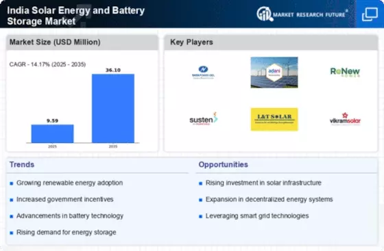 The India Solar Energy and Battery Storage Market is witnessing a surge in investment opportunities, driven by both domestic and international players. The government has established various financial mechanisms, such as green bonds and renewable energy funds, to attract investments in solar energy projects. Recent data indicates that investments in the renewable energy sector have reached over USD 10 billion in the last year alone, highlighting the growing confidence of investors in the market. Furthermore, public-private partnerships are becoming increasingly common, facilitating the development of large-scale solar projects and battery storage solutions. As financial support continues to expand, the India Solar Energy and Battery Storage Market is expected to attract more capital, fostering innovation and growth in the sector.