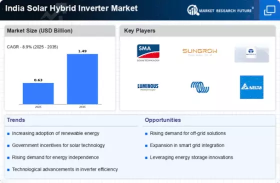 Technological advancements play a pivotal role in shaping the India Solar Hybrid Inverter Market. Innovations in inverter technology, such as improved efficiency and smart grid integration, enhance the performance of solar hybrid systems. The introduction of features like remote monitoring and battery management systems has made these inverters more appealing to consumers. Furthermore, advancements in energy storage solutions, including lithium-ion batteries, complement hybrid inverters, allowing for better energy management. As technology continues to evolve, the market is likely to see a surge in demand for high-performance solar hybrid inverters, with manufacturers striving to offer cutting-edge solutions that meet the diverse needs of Indian consumers.