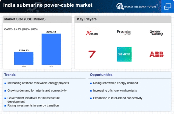 The surge in investments in renewable energy projects is a significant driver for the submarine power-cable market. With a focus on reducing carbon emissions, India is witnessing a substantial influx of capital into offshore wind and solar energy projects. This trend is likely to create a robust demand for submarine cables, which are essential for connecting these renewable sources to the grid. The submarine power-cable market is expected to benefit from this investment boom, with estimates suggesting that the sector could attract over $15 billion in funding by 2025. This influx of capital will not only enhance infrastructure but also stimulate job creation and technological advancements within the industry.