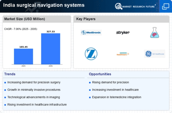 The surgical navigation-systems market in India is experiencing growth due to the increasing healthcare expenditure by both the government and private sectors. As healthcare budgets expand, hospitals and surgical centers are investing in advanced technologies, including surgical navigation systems, to enhance surgical precision and patient outcomes. According to recent data, healthcare spending in India is projected to reach approximately $370 B by 2025, which indicates a robust investment trend. This financial commitment is likely to drive the adoption of innovative surgical technologies, thereby propelling the surgical navigation-systems market forward. Furthermore, the emphasis on improving healthcare infrastructure and accessibility in rural areas may also contribute to the market's expansion, as more facilities seek to incorporate advanced surgical solutions.