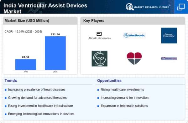 The ventricular assist-devices market is likely to benefit from the growing investment in healthcare infrastructure across India. The government and private sectors are increasingly allocating funds to enhance healthcare facilities, particularly in urban areas. This investment is aimed at improving access to advanced medical technologies, including ventricular assist devices. As more hospitals upgrade their facilities and acquire state-of-the-art equipment, the demand for these devices is expected to rise. Furthermore, the establishment of specialized cardiac care centers is anticipated to create a conducive environment for the growth of the ventricular assist-devices market. This trend suggests a positive outlook for the market as healthcare providers strive to meet the needs of patients with severe heart conditions.