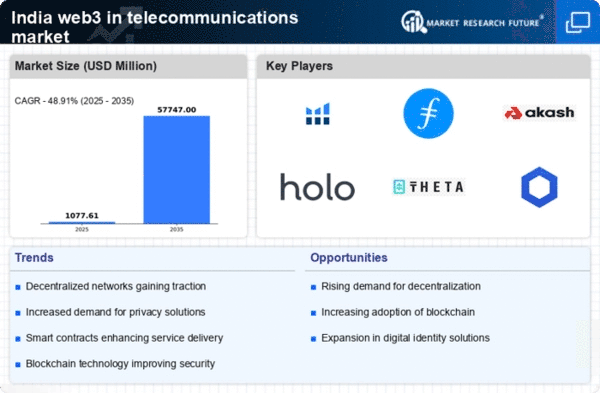 Government initiatives aimed at promoting digital transformation are crucial drivers of the web3 in-telecommunications market. In India, the Digital India program has laid the groundwork for the adoption of advanced technologies, including blockchain and decentralized networks. The government's commitment to fostering innovation is evident through various policies and funding opportunities that encourage startups and established companies to explore web3 solutions. For instance, the allocation of approximately $1 billion for technology development in the telecommunications sector is expected to stimulate growth in this market. Additionally, regulatory frameworks are being developed to facilitate the safe implementation of web3 technologies, which could further enhance investor confidence. As these initiatives gain momentum, they are likely to create a conducive environment for the expansion of the web3 in-telecommunications market in India.