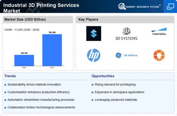 Europe's Industrial 3D Printing Services market is valued at 2.8B, reflecting a growing trend towards additive manufacturing across various sectors. The region benefits from strong regulatory support aimed at fostering innovation and sustainability. Initiatives from the European Union encourage the adoption of advanced manufacturing technologies, which are crucial for maintaining competitiveness in the global market. The increasing focus on reducing waste and enhancing production efficiency is driving demand for 3D printing solutions.