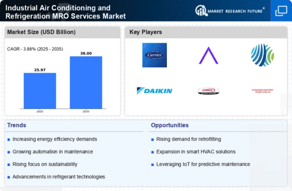 Europe's Industrial Air Conditioning and Refrigeration MRO Services market is valued at 7.5, reflecting a growing demand for sustainable and energy-efficient solutions. Regulatory frameworks, such as the EU's Green Deal, are pivotal in driving market growth by mandating reductions in greenhouse gas emissions. The increasing focus on climate change and energy conservation is pushing industries to adopt advanced cooling technologies, thereby enhancing market dynamics.