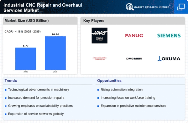 Europe's Industrial CNC Repair and Overhaul Services Market is valued at 1.8 billion, reflecting a growing demand for high-quality manufacturing solutions. The region benefits from stringent regulations that promote safety and efficiency in manufacturing processes. Additionally, the push for sustainability and energy efficiency in industrial operations is driving investments in CNC technologies, enhancing service offerings.