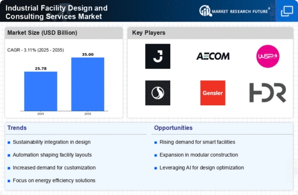 Europe's Industrial Facility Design and Consulting Services Market is valued at 7.5, reflecting a growing emphasis on sustainability and innovation. The region is witnessing increased demand for energy-efficient designs and smart manufacturing solutions, driven by stringent environmental regulations and a commitment to reducing carbon footprints. The European Union's Green Deal and various national initiatives are pivotal in shaping market dynamics, encouraging investment in sustainable infrastructure.