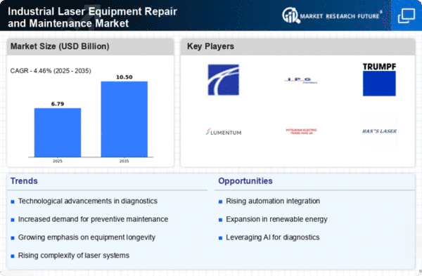 The Middle East and Africa region, with a market size of $0.95 billion, presents significant growth opportunities in the Industrial Laser Equipment Repair and Maintenance Market. The region is experiencing a gradual shift towards advanced manufacturing technologies, driven by government initiatives aimed at diversifying economies and enhancing industrial capabilities. The demand for laser equipment is increasing, particularly in sectors like construction and manufacturing, which is expected to boost repair and maintenance services.