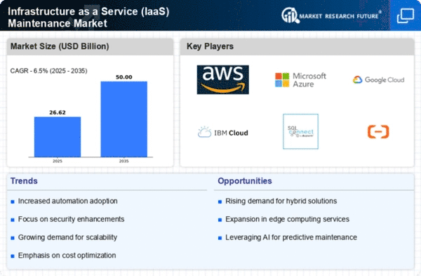 The rise of hybrid cloud environments is reshaping the Infrastructure as a Service (IaaS) Maintenance Market. Organizations are increasingly adopting hybrid models that combine on-premises infrastructure with public and private cloud services. This trend necessitates specialized maintenance solutions that can seamlessly integrate and manage diverse environments. The complexity of hybrid systems requires ongoing support and optimization, driving demand for IaaS maintenance services. As businesses seek to leverage the benefits of both cloud and on-premises solutions, the need for tailored maintenance strategies that address the unique challenges of hybrid environments is likely to grow.