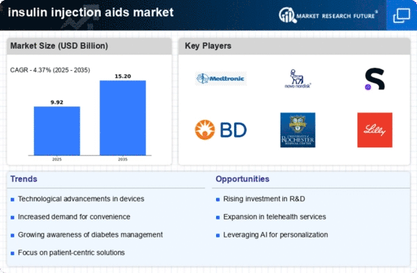 North America continues to lead the insulin injection aids market, holding a significant share of 4.75 billion. The region's growth is driven by increasing diabetes prevalence, technological advancements, and supportive healthcare policies. Regulatory bodies are promoting innovative solutions, enhancing patient access to insulin delivery systems. The demand for user-friendly devices is rising, reflecting a shift towards personalized healthcare solutions. The competitive landscape is robust, with key players like Medtronic, Eli Lilly, and Becton Dickinson dominating the market. The U.S. is the primary contributor, supported by a strong healthcare infrastructure and high R&D investments. Companies are focusing on product innovation and strategic partnerships to enhance their market presence. The emphasis on diabetes management solutions is expected to further propel market growth in the coming years.
