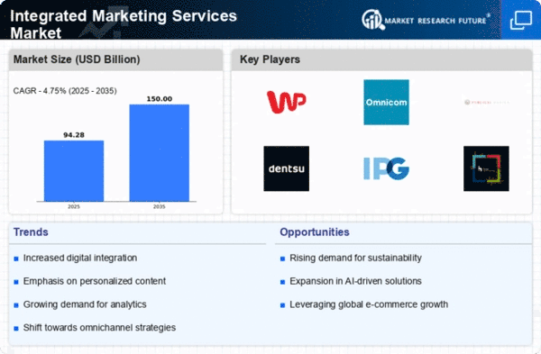 North America continues to lead the Integrated Marketing Services market, holding a significant 50.0% share as of 2024. The region's growth is driven by rapid technological advancements, increasing digital marketing adoption, and a strong focus on data analytics. Regulatory support for digital privacy and advertising standards further catalyzes market expansion, ensuring a robust framework for businesses to thrive. The competitive landscape is characterized by major players such as WPP, Omnicom Group, and Publicis Groupe, which dominate the market with innovative solutions. The U.S. remains the largest contributor, leveraging its advanced infrastructure and talent pool. Companies are increasingly investing in integrated strategies to enhance customer engagement and brand loyalty, positioning North America as a hub for marketing innovation.
