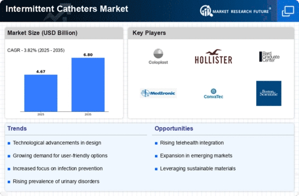 The Middle East and Africa (MEA) region, with a market size of 0.15 billion, presents unique growth opportunities in the Intermittent Catheters Market. The increasing prevalence of urinary disorders and a growing focus on improving healthcare infrastructure are key drivers. Regulatory initiatives aimed at enhancing healthcare quality are also contributing to market growth, fostering a more favorable environment for medical device adoption. Countries like South Africa and the UAE are leading the charge, with a mix of local and international players entering the market. Companies such as Smiths Medical and Amsino International are focusing on expanding their product lines to cater to the diverse needs of the region. The competitive landscape is characterized by strategic partnerships and investments aimed at enhancing market penetration and improving patient care.