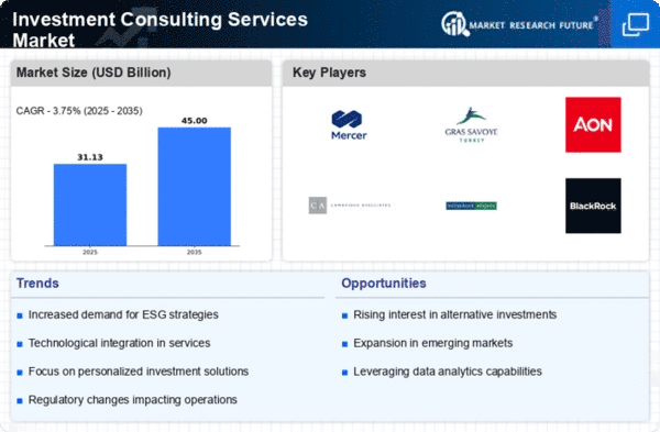 The Asia-Pacific region is witnessing a burgeoning Investment Consulting Services Market, with a size of 5.0 in 2024. This growth is fueled by increasing wealth in emerging economies, a rising number of high-net-worth individuals, and a growing awareness of investment diversification. Regulatory reforms aimed at enhancing market efficiency and investor protection are also contributing to the region's expansion.
