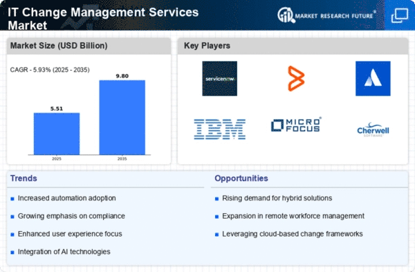 Europe's IT Change Management Services market is valued at 1.5B, reflecting a growing demand for structured change processes amid increasing regulatory scrutiny. The region is witnessing a shift towards cloud-based solutions, driven by the need for flexibility and scalability. Regulatory frameworks like GDPR are pushing organizations to adopt robust change management practices, enhancing compliance and operational resilience.