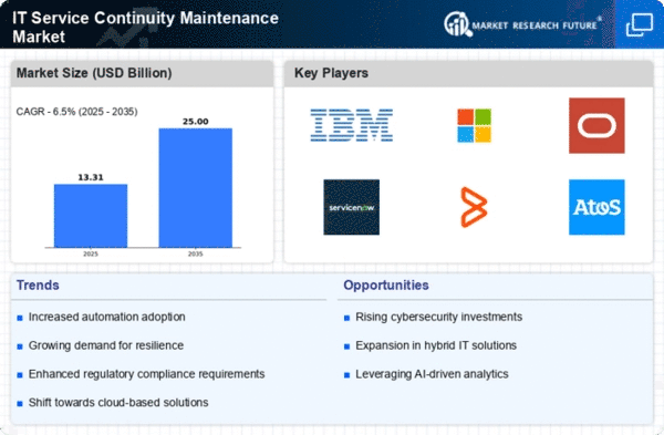 Europe's IT Service Continuity Maintenance Market is poised for growth, with a market size of 3.75 in 2025. The region is experiencing increased demand for IT continuity solutions driven by stringent regulations and a growing emphasis on data protection. European organizations are focusing on enhancing their IT resilience to comply with GDPR and other regulatory frameworks, which is propelling market growth.