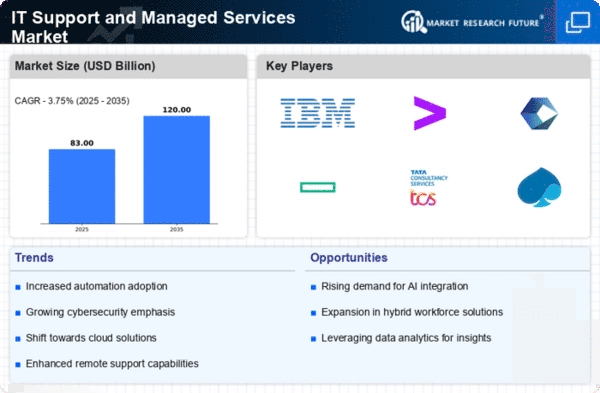 The IT Support and Managed Services Market is witnessing a growing complexity in IT infrastructure, which is driving demand for specialized support services. As organizations adopt diverse technologies, including cloud computing, IoT, and big data analytics, the intricacies of managing these systems have increased. This complexity necessitates expert IT support to ensure optimal performance and security. According to recent data, nearly 70% of organizations report challenges in managing their IT environments effectively. This situation presents a significant opportunity for managed service providers to offer tailored solutions that address specific organizational needs, thereby enhancing their market position.