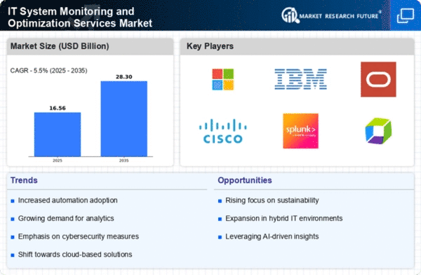 In the current landscape, the IT System Monitoring and Optimization Services Market is witnessing a growing emphasis on data-driven decision making. Organizations are increasingly leveraging data analytics to inform their IT strategies, leading to a heightened demand for monitoring and optimization services. By utilizing these services, companies can gain valuable insights into system performance, user behavior, and resource utilization. Recent studies suggest that businesses employing data-driven approaches can improve their decision-making speed by up to 50%. This trend underscores the importance of having robust monitoring systems in place to collect and analyze data effectively. As a result, the IT System Monitoring and Optimization Services Market is likely to expand as organizations prioritize data-centric strategies to enhance their operational efficiency.