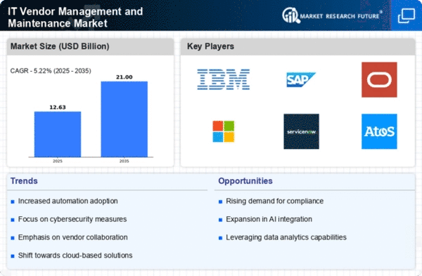 The IT Vendor Management and Maintenance Market is increasingly influenced by the need for regulatory compliance and adherence to industry standards. Organizations are facing mounting pressure to comply with various regulations, such as data protection laws and industry-specific standards. This compliance imperative necessitates the implementation of effective vendor management practices to mitigate risks associated with non-compliance. Data indicates that organizations that prioritize compliance in their vendor management processes are less likely to encounter legal issues and financial penalties. As regulatory frameworks continue to evolve, the demand for vendor management solutions that facilitate compliance tracking and reporting is expected to grow. Thus, the focus on regulatory compliance and standards serves as a crucial driver for the IT Vendor Management and Maintenance Market, shaping the strategies organizations adopt in managing their vendor relationships.