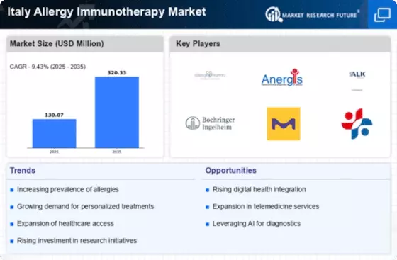 Technological advancements in immunotherapy are transforming the landscape of the Italy Allergy Immunotherapy Market. Innovations such as sublingual immunotherapy and personalized treatment plans are gaining traction among healthcare providers. These advancements enhance the efficacy and safety of treatments, making them more appealing to patients. For instance, the introduction of new delivery systems has improved patient compliance, as they offer more convenient administration methods. Furthermore, the market is witnessing the development of biologics that target specific allergens, which could potentially revolutionize treatment protocols. As these technologies continue to evolve, they are expected to drive growth in the market, attracting both patients and healthcare professionals to adopt immunotherapy as a viable option.