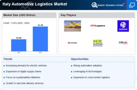 Technological innovations are playing a pivotal role in transforming the Italy Automotive Logistics Market. The adoption of advanced technologies such as artificial intelligence, big data analytics, and the Internet of Things (IoT) is enhancing supply chain efficiency and transparency. For example, logistics companies are utilizing real-time tracking systems to monitor vehicle shipments, which improves delivery accuracy and reduces lead times. In 2025, it is projected that over 60% of logistics providers in Italy will integrate these technologies into their operations. This trend not only streamlines logistics processes but also enables companies to respond swiftly to market demands, thereby fostering growth in the Italy Automotive Logistics Market.