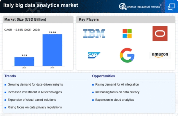 The rapid expansion of e-commerce and online services is significantly influencing the big data-analytics market. As more consumers turn to digital platforms for shopping and services, businesses are inundated with data that requires analysis to understand consumer behavior and preferences. In Italy, e-commerce sales are projected to reach €30 billion by 2025, creating a pressing need for analytics solutions to optimize marketing strategies and improve customer engagement. This surge in online activity is likely to drive demand for big data-analytics tools that can process and analyze large volumes of transactional data, thereby enhancing business performance.