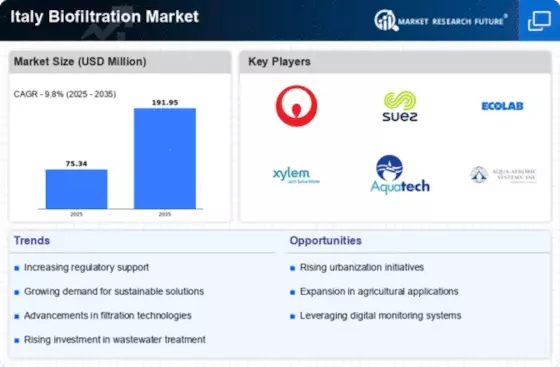 The Italy Biofiltration Market is experiencing a notable boost due to robust regulatory frameworks that promote sustainable practices. The Italian government has implemented various policies aimed at enhancing environmental protection and sustainability. For instance, the National Recovery and Resilience Plan (NRRP) allocates significant funding for green projects, including biofiltration systems. This regulatory support not only encourages the adoption of biofiltration technologies but also aligns with the European Union's Green Deal objectives. As a result, the market is projected to grow at a compound annual growth rate (CAGR) of approximately 7% over the next five years, driven by increased investments in eco-friendly infrastructure. Furthermore, local municipalities are incentivized to integrate biofiltration solutions in urban planning, thereby expanding the market's reach and application.