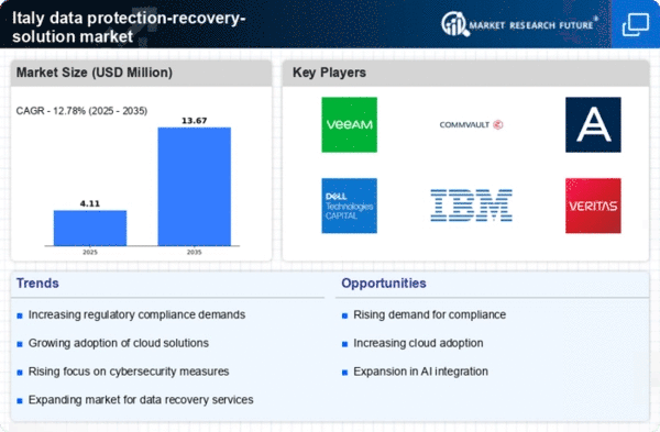 Technological advancements in data security are driving innovation within the data protection-recovery-solution market. The emergence of artificial intelligence (AI) and machine learning (ML) technologies is enabling organizations in Italy to enhance their data protection strategies. These technologies facilitate real-time threat detection and automated response mechanisms, significantly improving the resilience of data recovery solutions. As businesses increasingly adopt these advanced technologies, the data protection-recovery-solution market is likely to expand, offering cutting-edge solutions that address evolving security challenges. Furthermore, the integration of blockchain technology is also gaining traction, providing an additional layer of security for data transactions. This technological evolution suggests a promising future for the data protection-recovery-solution market, as organizations seek to leverage innovative solutions to safeguard their data.