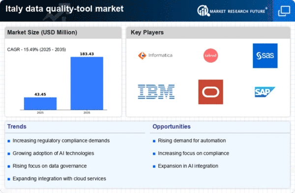 The increasing reliance on data-driven decision-making in various sectors in Italy has led to a heightened demand for data accuracy. Organizations are recognizing that high-quality data is essential for effective operations, customer satisfaction, and competitive advantage. As a result, the data quality-tool market is experiencing significant growth, with estimates suggesting a compound annual growth rate (CAGR) of around 15% over the next five years. This trend indicates that businesses are investing more in tools that ensure data integrity and reliability, thereby driving the market forward. Furthermore, the emphasis on accurate data is not limited to large enterprises; small and medium-sized enterprises (SMEs) are also adopting data quality tools to enhance their operational efficiency. Consequently, the growing demand for data accuracy is a pivotal driver in the data quality-tool market.