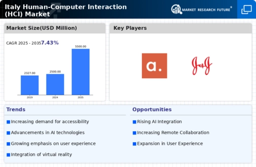 The Italy human computer interaction market is witnessing a growing demand for accessibility features in technology. This trend is driven by an increasing awareness of the need for inclusive design, ensuring that digital products are usable by individuals with disabilities. According to recent data, approximately 3 million people in Italy live with some form of disability, highlighting the necessity for accessible interfaces. Companies are now prioritizing the development of user-friendly applications that cater to diverse user needs, which is likely to enhance user engagement and satisfaction. Furthermore, government initiatives aimed at promoting digital accessibility are expected to bolster this trend, as they encourage businesses to adopt inclusive practices. As a result, the focus on accessibility is not only a moral imperative but also a strategic advantage in the competitive landscape of the Italy human computer interaction market.
