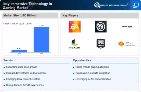 The cultural embrace of gaming and digital entertainment in Italy is a significant driver for the immersive technology in gaming market. As gaming becomes more mainstream, there is a growing acceptance of immersive technologies as a form of entertainment. This cultural shift is reflected in the increasing participation of diverse demographics in gaming, including older adults and women. Furthermore, Italian gaming festivals and conventions are showcasing immersive technologies, providing a platform for developers to present their innovations. This cultural acceptance not only boosts the visibility of immersive gaming but also encourages investment in new projects, thereby fostering a vibrant ecosystem for the Italy Immersive Technology in Gaming Market.