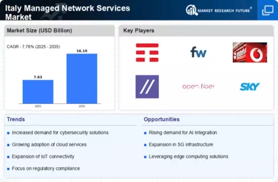 Cybersecurity has emerged as a critical concern for businesses in the Italy managed network services market. With the rise in cyber threats and data breaches, organizations are prioritizing investments in comprehensive cybersecurity solutions. Recent statistics reveal that Italian companies are expected to allocate approximately 15% of their IT budgets to cybersecurity measures in 2026. This heightened focus on security is driving the demand for managed network services that offer integrated security features, such as threat detection and response capabilities. As businesses seek to protect sensitive data and maintain regulatory compliance, the managed network services sector is likely to see increased growth, as providers enhance their offerings to meet these security needs.