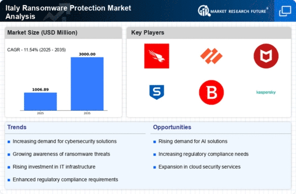 Ongoing digital transformation initiatives across various sectors in Italy are catalyzing the ransomware protection market. As organizations increasingly adopt digital technologies, the attack surface for cybercriminals expands, making robust cybersecurity measures essential. The shift towards remote work and cloud-based solutions has further amplified the need for effective ransomware protection. Companies are investing in advanced security solutions to safeguard their digital infrastructure and ensure business continuity. This trend is likely to drive the growth of the ransomware protection market, as organizations seek to mitigate risks associated with digital transformation. Integrating security measures into digital strategies is becoming a priority for businesses aiming to thrive in a digital landscape.