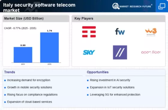 The competitive dynamics within the security software telecom market in Italy are characterized by a blend of innovation, strategic partnerships, and a focus on digital transformation. Key players such as Telecom Italia (IT), Vodafone Group (GB), and Cisco Systems (US) are actively shaping the landscape through their operational strategies. Telecom Italia (IT) has been emphasizing the integration of advanced cybersecurity solutions into its telecom offerings, aiming to enhance customer trust and service reliability. Meanwhile, Vodafone Group (GB) is pursuing a strategy of regional expansion, particularly in the realm of IoT security, which appears to be a growing segment within the market. Cisco Systems (US) is focusing on innovation, particularly in AI-driven security solutions, which could potentially redefine the competitive environment by setting new standards for service delivery and customer engagement.
