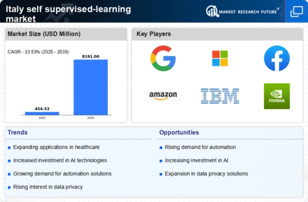 The self supervised-learning market in Italy is significantly influenced by the increasing availability of data. With the proliferation of digital technologies, organizations are generating vast amounts of data daily. This abundance of data presents a unique opportunity for self supervised-learning techniques, which thrive on large datasets for training models. In 2025, it is projected that data generation in Italy will exceed 50 zettabytes, creating a fertile ground for the self supervised-learning market to flourish. Companies are recognizing the value of harnessing this data to improve predictive analytics and enhance customer experiences. Consequently, the demand for self supervised-learning solutions is expected to rise, as businesses seek to leverage data-driven insights for strategic decision-making.
