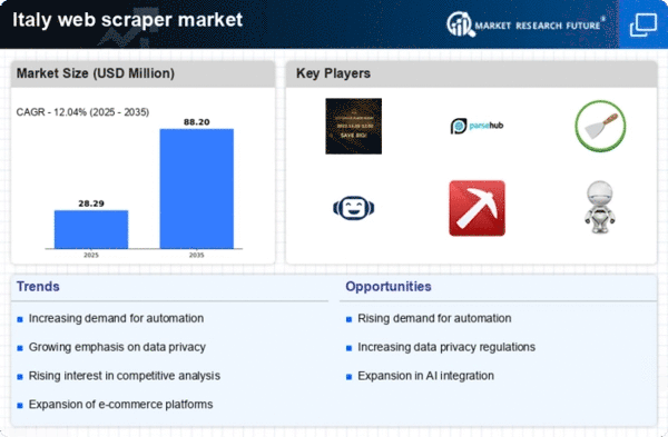 The surge in e-commerce activities in Italy has catalyzed the growth of the web scraper-software market. As businesses increasingly rely on online platforms for sales, the need for data extraction from competitor websites, product listings, and customer reviews has become paramount. This trend is reflected in the 2025 e-commerce revenue projections, which indicate a potential increase of 15% compared to previous years. Companies are leveraging web scraping tools to gather insights on pricing strategies, consumer behavior, and market trends, thereby enhancing their competitive edge. Consequently, the web scraper-software market is witnessing heightened demand as organizations seek to optimize their operations and improve customer engagement through data-driven decisions.