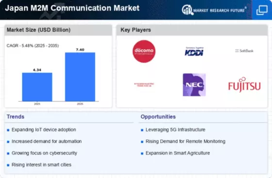 Sustainability has become a central theme in the Japan M2M Communication Market, as businesses and government entities strive to reduce their environmental impact. M2M technologies are being utilized to monitor energy consumption, optimize resource usage, and enhance waste management practices. For example, smart meters and connected devices are being deployed to track energy usage in real-time, allowing consumers and businesses to make informed decisions. The Japanese government has set ambitious targets for carbon neutrality by 2050, which is likely to drive further investment in M2M solutions that support sustainable practices. This focus on sustainability may create new opportunities for M2M communication providers to develop innovative solutions.
